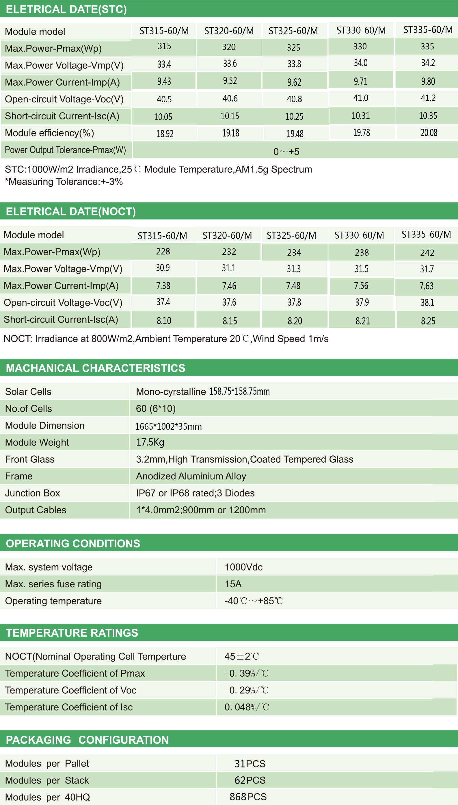 Maximum power up to 335W, conversion efficiency up to 20.08%